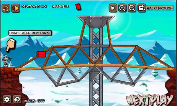 死亡爆破 2.14 安卓版 死亡爆破安卓版是一款很有趣的益智过关小游戏。死亡爆破安卓版中,你接到线报得知大批敌人正疯狂的向你的基地逼近,为了阻止敌人的入侵,现在你准备在敌人行军途中进行一次阻敌爆破行动,在敌人必经之地的桥梁上恰当的安放炸弹,消灭所有的敌人,很有趣意思的小游戏,喜欢的朋友快来玩玩吧!