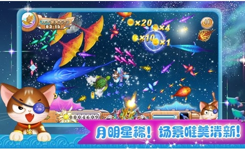 捕鱼大咖秀天空浪潮 V1.1 安卓版 捕鱼大咖秀-天空浪潮是一款非常独特的捕鱼游戏,不仅画面浪漫唯美,而且游戏简单容易上手,“喵星人”强势登陆地球,捕鱼大咖新宠再现!你还在仅仅满足于在小鱼塘里撒网捕鱼吗?太、太、太OUT啦!从现在起就感受“天空浪潮”中奇异的飞鱼吧!新奇场景,多样的关卡,你不容错过的休闲捕鱼游戏。