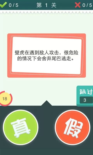 是真是假是一款运行在安卓平台上的益智休闲游戏,生活常识扫盲游戏,游戏类型大家应该熟悉,就是Yes or No的形式来玩游戏。是真是假,你需要累积答对近1000道题才能通关