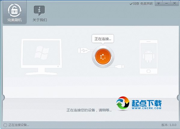 1.打开完美刷机,手机打开USB调试并用数据线连接电脑,如果不会打开USB调试设置,可以参考软件首页的教程提示。