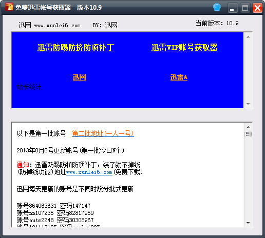 迅网迅雷vip账号获取器 v10.9更新内容: