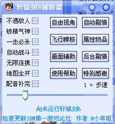 轩辕剑6辅助器是一款专为轩辕剑6打造的辅助工具,轩辕剑6辅助工具具有一击必杀,自动战斗,无限连携,地图全开等等功能,欢迎下载使用。