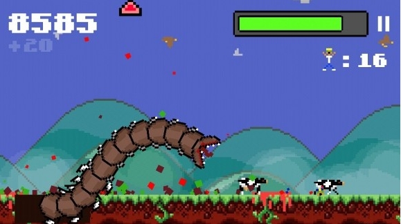 超级巨型蠕虫是一款像素风格的游戏,你会扮演一只巨型蠕虫来消灭邪恶的人类,有点恶搞了。