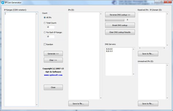 IP列表生成器允许生成IP地址的列表为指定的IP范围。