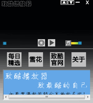 致酷播放器由致酷网开发并发布的一款简洁炫酷的音乐播放器,虽然界面小巧却非常强劲。更有飘雪桌面动画,让你在享受音乐的同时不再单调。