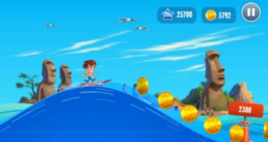 冲浪万岁Banzai Surfer v1.1.1 安卓版 《冲浪万岁 Banzai Surfer》是一款画面清新的横版跑酷类游戏。游戏中你可以享受冲浪的乐趣,但是同时也要躲避鲨鱼,找到沉船宝藏,也可以骑海豚。游戏操作简单,只需要一根手指在屏幕上,只是需要把握按住和松手的节奏。随着游戏的进行,你可以解锁更多的成就和道具。
