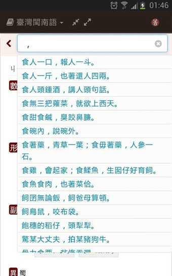 » 字典来源为教育部《重编国语辞典修订本》、《台湾闽南语常用词辞典》及《台湾客家语常用词辞典》。