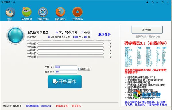 特点:让您在舒心的环境下写作,里面包含即时字数统计,各种优雅的背景颜色,以及丰富的任务目标等等