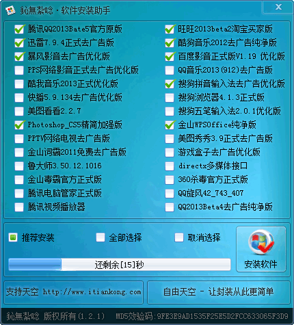 软件安装助手 v1.2.1 中文绿色版 软件安装助手完全免费,无任何版权信息,可以根据自己的喜好随意修改。