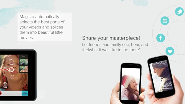 用户使用手机来录制视频或者从Camera Roll应用选择视频,选择音频添加标题,剩下的事情就交给Magisto来完成。 这款应用使用革命性技术,它能够读懂用户的视频;对视频进行分析,选择出视频中最精彩的部分然后将这些部分剪辑在一起,给用户带来富有创意性转场效果,以及滤镜和音乐效果。