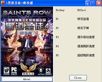 黑道圣徒4修改器+5 v1.0 中文版 黑道圣徒4修改器是同名游戏的修改工具,功能强大,使用简单,降低游戏的难度,方便玩家更好滴体验游戏。