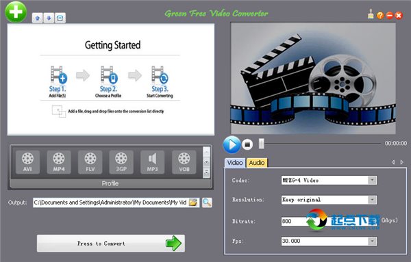 Green Free Video Converter v1.6 官方安装版 Green Free Video Converter是一个全能的视频转换解决方案,作者承诺100%纯净无广告和插件,支持超过200种格式,视频格式包括:AVI, MP4, MKV, WMV, MPG, 3GP, 3G2, SWF, FLV, TOD, AVCHD, MOV, DV, RM, QT, TS, MTS等,支持音频格式主要有MP3, AAC, WMA, WAV等。可运行于Windows 9x---Windows 7操作系统。