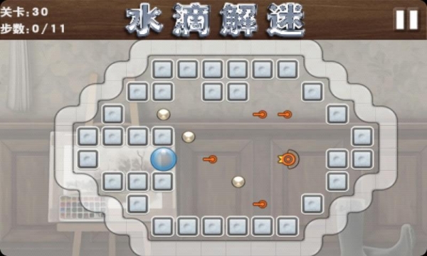 玩法并不复杂,你通过移动水滴来收集散落在屏幕上小水滴,但是需要注意的是,大水滴移动的时候只能够一次性到头!也就是大水滴只能在边与边之间移动,不会在中途停下来,这就要求你仔细的判断下大水滴的移动方式。