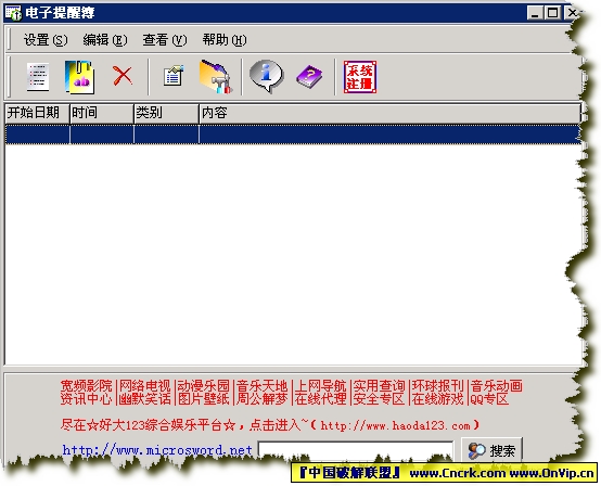 一个极为方便的电脑桌面提醒软件,可设多个时间提醒任务,在您需要的时候提醒您,防止您忘记重要的事情。您不妨下载试试^_^