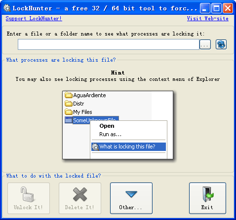 LockHunter 可以: * 显示文件正在被哪个进程锁定;