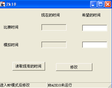 NBA2k10时间修改器 中文版 NBA2k10时间修改器是同名游戏NBA2k10的简单的辅助工具,玩家可自定义游戏时间,任何数值,随意修改,非常人性化,需要的玩家赶紧拿走吧。NBA2k系列是全球最受欢迎的篮球游戏,该作是以NBA10-11赛季为背景制作的版本,以超级巨星科比为封面,受到了全球无数玩家的追捧