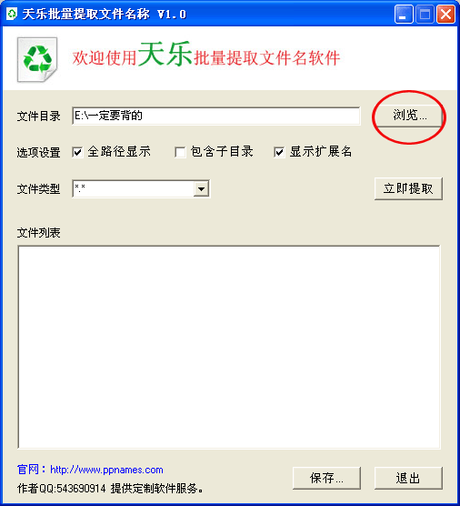 天乐批量提取文件名可批量提取文件名,不用再一个个复制,操作非常简单只要将需要提取名字的文件放在同一个文件夹里,然后浏览到这个文件夹,就能立即提取该文件夹下所有的文件的名字及扩展名。