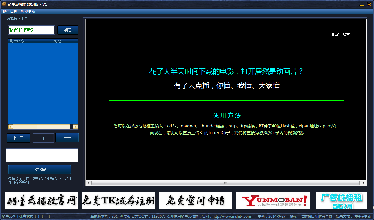 酷星云播放是通过云加速在线观看视频的服务,视频下载地址、BT种子,均可直接在线观看,无需下载。