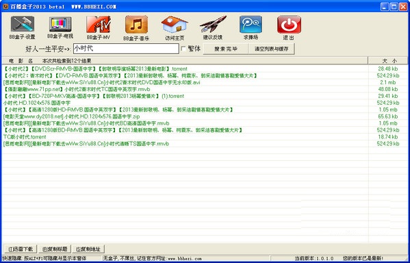 百播盒子(简称BB盒子)是一款免费影音搜索与播放软件,本软件在不违反中国法律的前提下进行搜索与影视播放,我们的口号是:”解放双手,随意播放”。