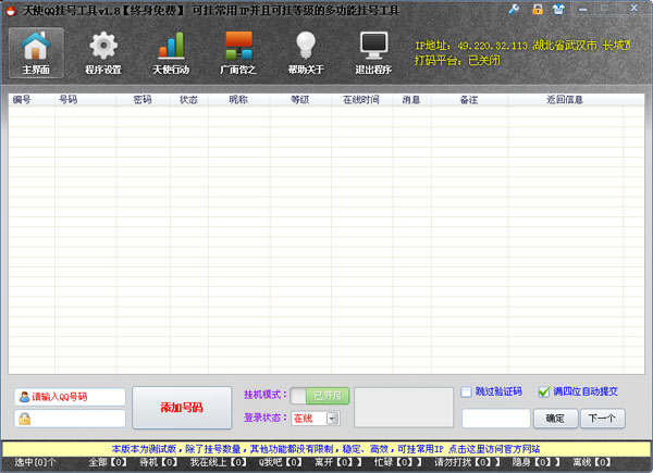 天使QQ挂号器是一款可挂常用IP并且可挂等级的多功能挂号工具,qq挂号器测试版本除了挂号数量有限制外,其他功能都没有限制,稳定、高效,欢迎下载使用。