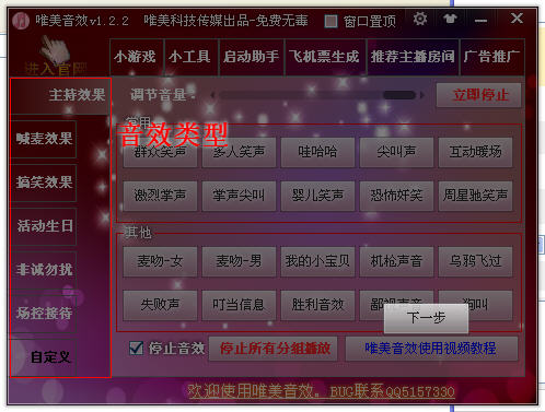 主持、喊麦、搞笑、活动、非诚勿扰、场控接待,有MP3录音机、小游戏、电音、在线电视等等,还有很多。
