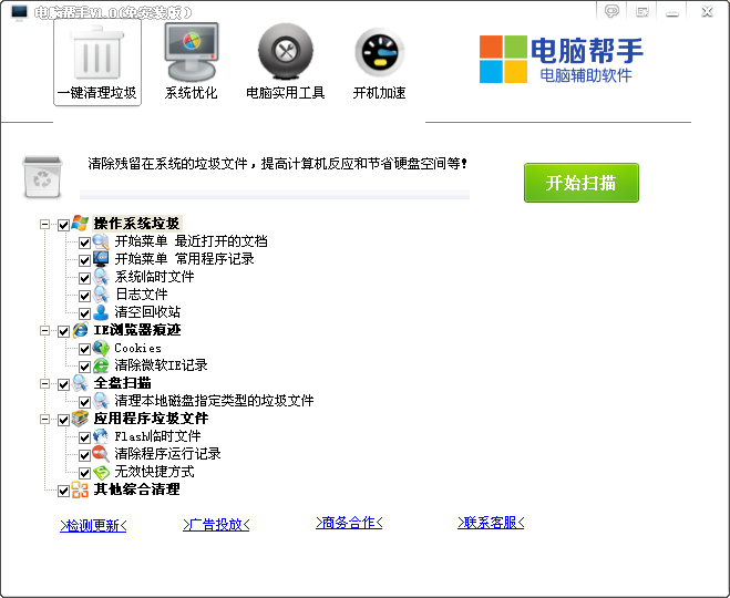 电脑帮手是一款电脑辅助工具。虽然它身体小,但用有强大的电脑清理、优化。加速等功能,相比一些安全软件而言,它小巧实用,还有许多必备小工具。如你不想让电脑因清洁系统而却被那些安全管家之类的占具庞大的资源,那么电脑帮手便是你心仪对象。