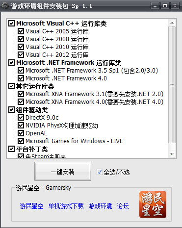 游戏环境程序集合傻瓜安装包 v1.1 绿色版 玩游戏必备:游戏环境程序集合傻瓜安装包