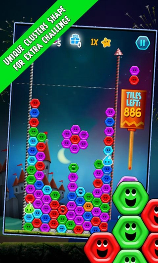 在王国的黑夜中,只有月亮在发光…是时候利用一些火花点亮天空!您想目睹闪耀的炫彩亮光产生的巨大连锁反应吗?将3个拥有相同颜色的瓷砖配对,让它们爆炸并消失!您的配对次数越多——您创造的闪耀连锁反应持续得越久…并且您获得的分数越高!