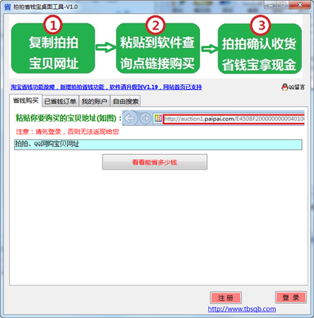 1,《拍拍省钱宝》支持 拍拍网商品网址、QQ网购商品网址,不支持淘宝与天猫网址。