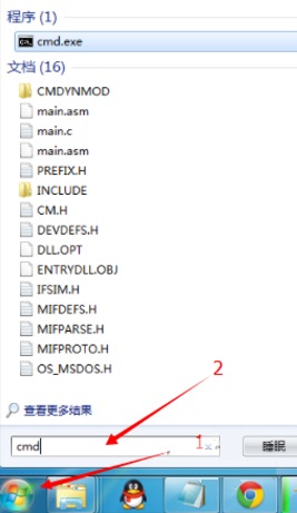 二、点击开始菜单,搜索到 cmd程序。(一定一定要以管理员身份运行)