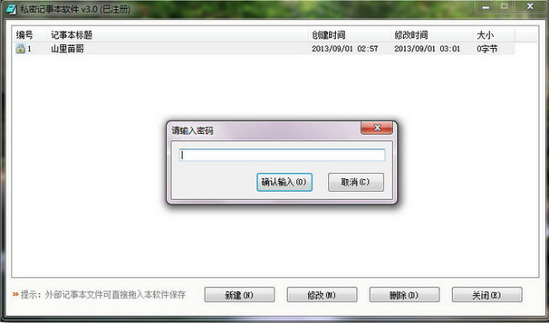私密记事本软件破解版可以无限添加记事文档,每个记事文档都可以单独设置密码,外部记事本文件可直接拖入本软件进行加密、编辑、保存。
