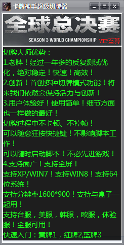 lol卡牌神手超级切牌器是专用于英雄联盟游戏的卡牌大师切牌神器,lol卡牌切牌器的优点是小巧绿色不含广告并且无毒、切牌速度快,另外还可以像QQ一样贴边隐藏,乃是作弊利器,淘宝上同类产品要卖20元,现开发免费版本供玩家使用,欢迎下载体验。