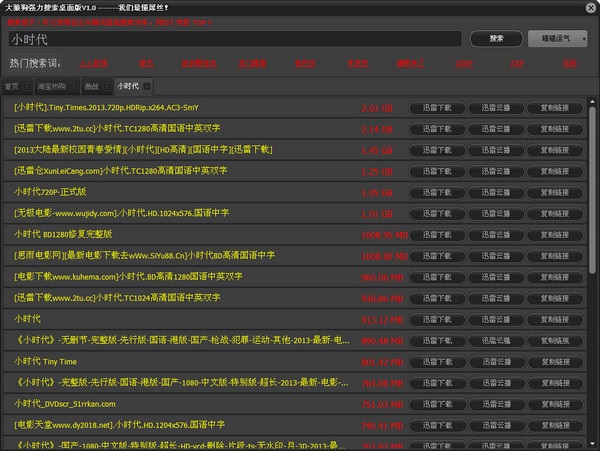大狼狗强力搜索桌面版是一款提供网络视频资源、种子搜索的神器。支持迅雷云播放,迅雷下载,电驴下载等主流下载器。搜索的时候可以使用组合关键词提高搜索效率。