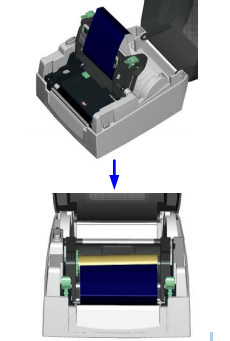 7. 将列印机心压下固定后即完成碳带安装。