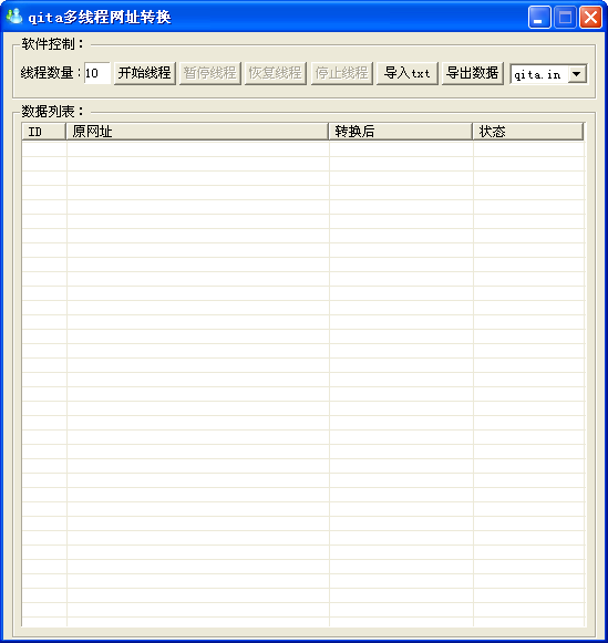 qita多线程网址转换是由qita短网址开发平台制作的一款网址批量缩短工具,支持国内外主流短网址批量缩短,采用多线程,速度飞快,欢迎下载体验。