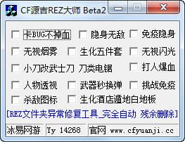 cf源吉REZ大师 beta2 全能版 cf源吉REZ大师全能版发布了,一键即可修改rez,提供热门辅助功能,欢迎下载体验。