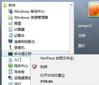1.打开开始菜单,然后选择所有程序---附件---命令提示符,右击以管理员的身份运行即可。