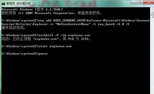 reg add HKEY_CURRENT_USER/Software/Microsoft/Windows/CurrentVersion/Policies/Explorer /v "NoViewContextMenu" /t reg_dword /d 0 /f