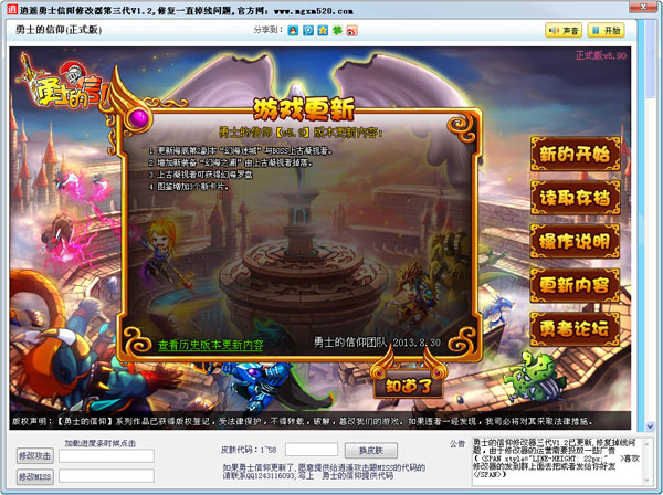 逍遥勇士的信仰修改器第三代 1.2 最新免费版 逍遥勇士的信仰修改器第三代最新版发布了,本款勇士的信仰修改器提供修改攻击和miss功能,打造玩家最喜欢的辅助工具,欢迎下载体验。