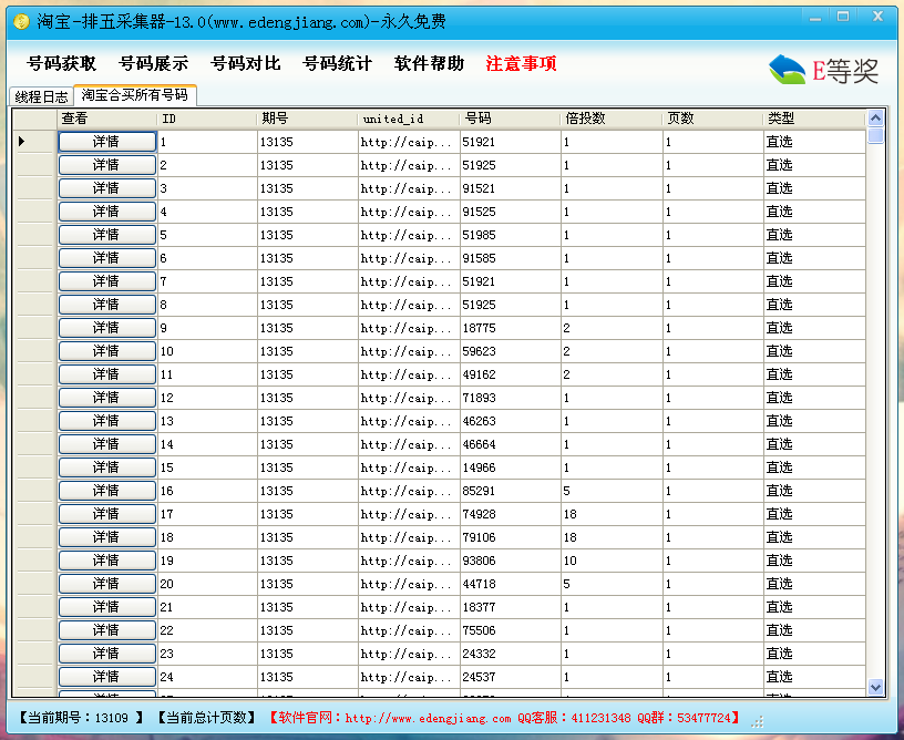 淘宝排五采集器是一款淘宝双色球号码合买的采集工具。淘宝排五采集器只能对那些公开的号码进行采集,而且淘宝排五采集器还有强大的分析能力,能帮您排除大量的他人已选的号码。淘宝排五采集器排列五号码采集的好帮手。