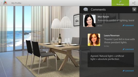 通过 Facebook 和电子邮件与您的朋友分享您的家装设计。