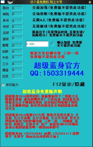 街头篮球超级蓝身辅助是是一款《街头篮球》游戏的辅助工具。该街头篮球免费辅助独家开放的命中90,锁球,免费版本没有次数限制,完全做到了真正的免费效果,需要玩家在进入游戏之后再点辅助工具启动按钮。