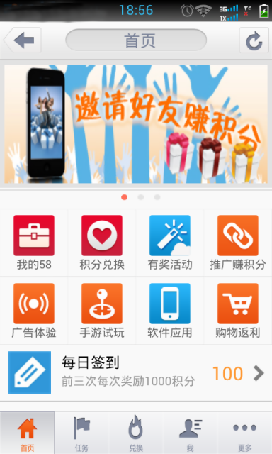 58积分安卓版是一款基于智能手机的手机赚钱软件,58积分安卓版让用户在安装应用、试玩、体验、反馈推荐应用的同时获得Q币、现金或手机话费奖励。