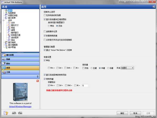 通过使用这一工具,你可以为普通窗口标题栏增加“最小化至系统托盘”和“总在最上面”两个特殊的按钮(想必是受了Linux系统的启发)。大家如果对此类功能的程序感兴趣,也可以试试下面这款同一公司的产品 Actual Window Manager