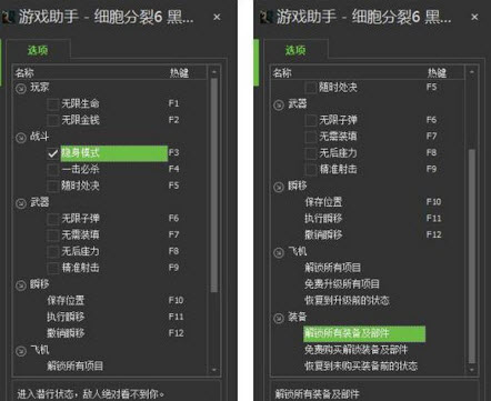 细胞分裂6:黑名单多功能修改器是针对同名游戏的多功能辅助修改工具,这款修改器添加了无限生命、金钱、子弹等数十种强大的功能,带给玩家更加刺激的游戏体验。