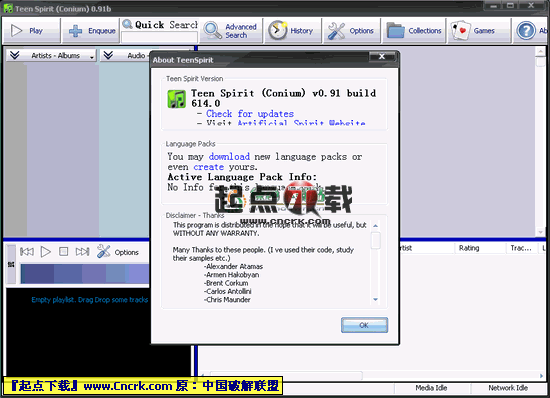 Teen Spirit V0.95.855 汉化绿色免费版 Teen Spirit 是一款从众多同类软件当中脱颖而出的 MP3 播放器和组织器,带有一个非常友好的用户界面并且可以简单的访问诸如封面下载,歌词获取,艺术家简介,隐私等级等这样的一些大多数流行的功能.你可以通过简单地添加包含你的 MP3 文件的文件夹的路径的方式创建多个收藏集,可以在你的收藏集内搜索以及采用若干种方式排序你的文件.该软件可以自动地下载歌词,封面艺术画和艺术家简介(任何可提供的时候)并且本地地存储该信息,因此该信息在任何时候都可以使用,而无论你的互联网是否已经连接.