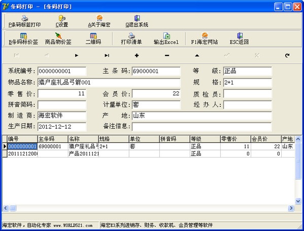 海宏条码打印软件是一款绿色免费软件,支持二维码和普通条码打印。可以对商品物价签及条码标签进行更改打印,还可以输出excel,非常实用方便。