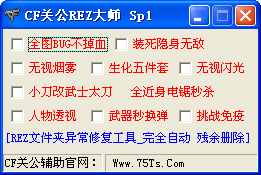 cf关公体验一区一键REZ大师sp1 绿色版 cf关公让你游戏轻松更欢乐。通过手动去替换cf目录下的rez文件达到辅助功能的方法太过麻烦,针对体验服一区,cf关公制作了一键REZ大师辅助,勾选功能选项后,在游戏中即可立即生效,方便快捷,欢迎下载体验。