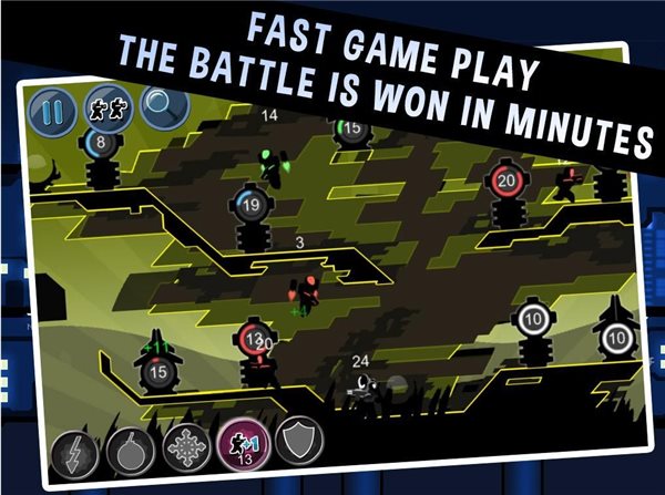 在这里玩家将化身为一名指挥官,不断地从自家基地中调遣士兵,或驰援前线阵地,或攻击其他势力据点夺取控制权,最终击败所有对手。画面还是一如既往地采用了黑白、黑蓝、黑黄等方式进行搭配表达,当中点缀的一些灯光、霓虹也让画面看起来更有科技感。