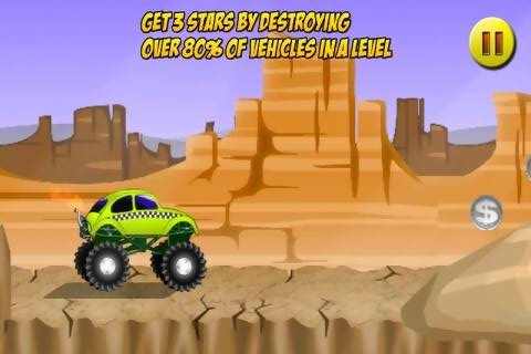 狂暴卡车安卓版的玩法比较简单,画面制作比较一般,场景类似于沙漠,狂暴卡车安卓版的主要游戏玩法是玩家要操控怪兽卡车去破坏小车,收集硬币,获得高分,很适宜休闲的小游戏。